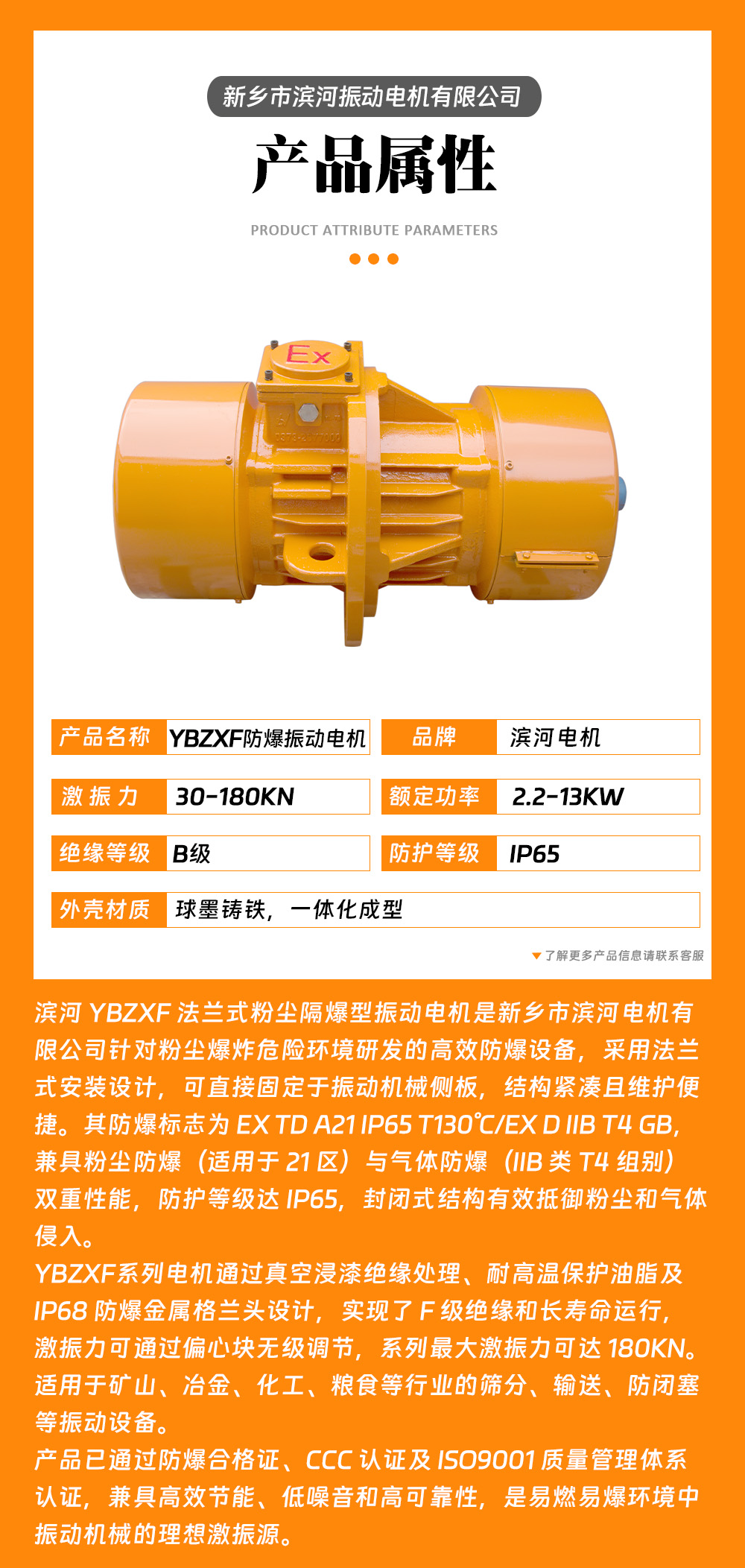 YBZXF - 50 - 6侧板防爆振动电机是新乡市滨河电机有限公司精心研制的高效能防爆振动电机,专为在潜在爆炸性环境中安全运行而设计,集多种优异性能于一身,是众多工业领域振动设备的理想激振源。
